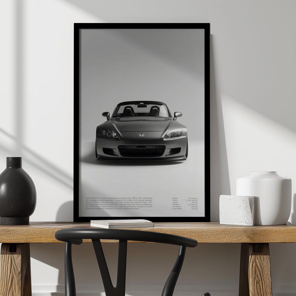 S2000 poster print jdm sports car luxury wall art, gift for S2000 lover japanese car design fine art print, automotive decor fan